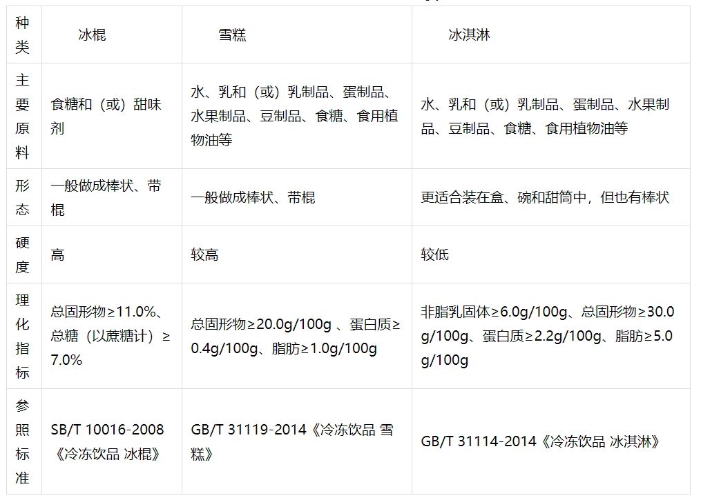 但是,尽管同属“清凉家族”,但从相关标准规定的产品原辅料和制作工艺来看,区别还是很明显。以较常见的雪糕、冰棍和冰淇淋为例: